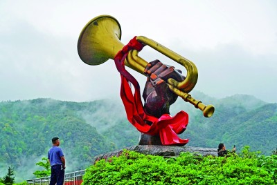 游客在江西井岡山參觀“勝利的號角”雕塑。1927年,中國共產黨人在井岡山創建了第一個農村革命根據地,成為中國革命走向勝利的光輝起點。本版照片均為新華社發
