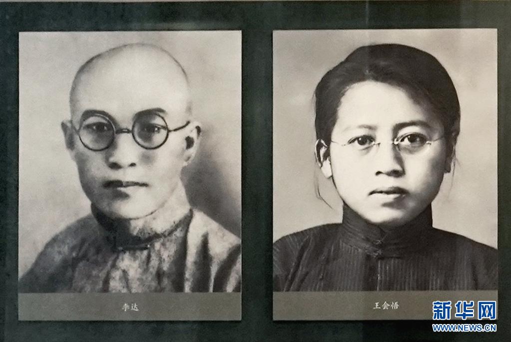 中共二大會址紀念館展示的李達、王會悟夫婦的照片。新華社發