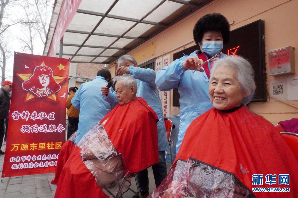 2021年3月5日,北京市豐臺區東高地街道的志愿者為社區內的老人理發。新華社記者 李欣 攝