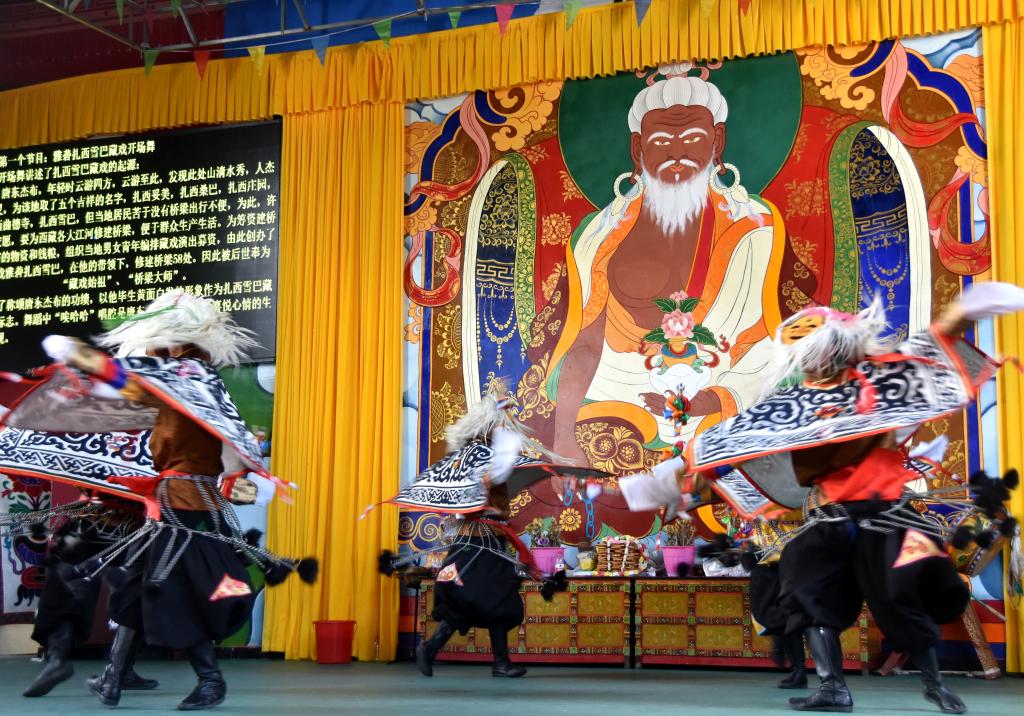 “相傳在公元15世紀,藏戲創始人唐東杰布募資修橋時途經這里,創作了雅礱扎西雪巴藏戲,600多年來傳唱不息,因此這里也被譽為‘藏戲第一村’。”扎西曲登社區居委會主任尼瑪次仁向記者介紹。