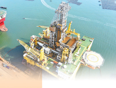 大型海工裝備“藍鯨一號”正在山東煙臺進行維護保養。