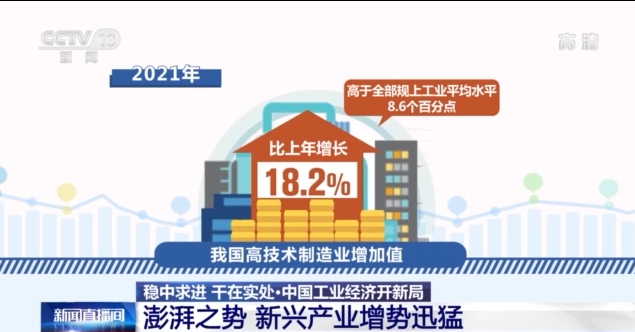 一開年,處處干勁十足,我國工業領域真是“新”意澎湃。其實一直以來,我國新興產業的發展勢頭都可以用“迅猛”這個詞來形容,2021年我國高技術制造業增加值比上年增長18.2%,高于全部規上工業平均水平8.6個百分點。
