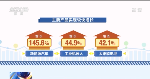 主要產品也實現較快增長,新能源汽車增長145.6%,工業機器人增長44.9%、太陽能電池增長42.1%。