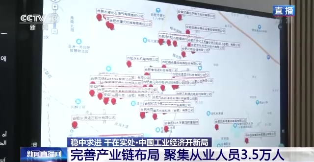 目前在合肥,整個新型顯示產業,以京東方這樣的龍頭企業為依托,已經形成了非常完善的產業鏈,我們再通過一張圖來看一下。以我所在的這里為中心,方圓5公里內,顯示產業的企業數量超過了40家。截至目前,合肥顯示產業企業數量超過123家,2021年實現產值792億元,同比增長29.7%,近三年年均增長27.45%。集聚從業人員3.5萬人。