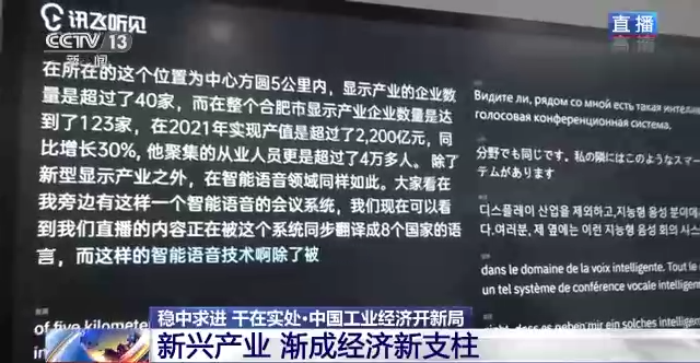 除了新型顯示產業,在智能語音領域,同樣如此。在智能語音平臺,智能語音翻譯平臺正在將直播內容翻譯成十幾個國家的語言。