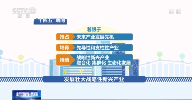 “十四五”規劃綱要指出了方向,提出:“十四五”期間,發展壯大戰略性新興產業,著眼于搶占未來產業發展先機,培育先導性和支柱性產業,推動戰略性新興產業融合化、集群化、生態化發展,戰略性新興產業增加值占GDP比重超過17%。