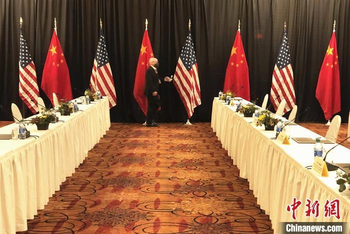 資料圖:美國(guó)安克雷奇,中美高層戰(zhàn)略對(duì)話會(huì)場(chǎng)。中新社記者 陳孟統(tǒng) 攝