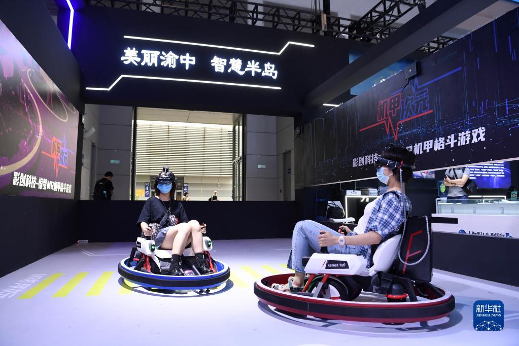 2021年8月23日,觀眾在2021中國國際智能產(chǎn)業(yè)博覽會(huì)上通過MR技術(shù)體驗(yàn)機(jī)甲格斗游戲。新華社記者 唐奕 攝