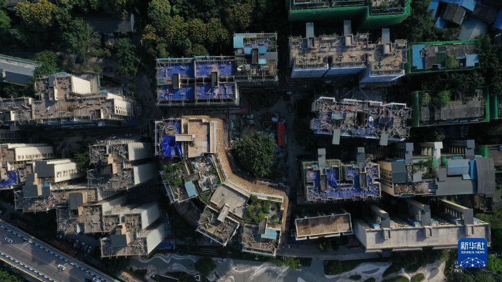 這是重慶市北碚區新房子片區老舊小區改造項目施工現場(2021年10月23日攝,無人機照片)。新華社發(秦廷富攝)