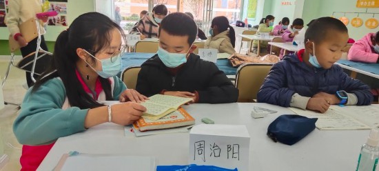 云南會澤新城婦聯項目點的志愿者正為孩子們輔導功課。(受訪者供圖)