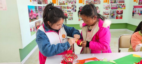 云南會澤新城婦聯項目點的志愿者正教授孩子做手工藝品。(受訪者供圖)