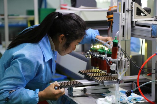 云南會澤縣新城的搬遷群眾在扶貧車間工作。(李榮山攝)