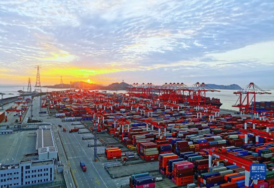這是1月1日拍攝的洋山港的新年日出。新華社發(fā)