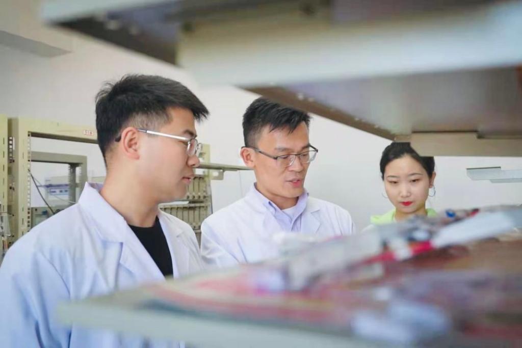 王家鈞(中)和學生們在實驗室攻關。(資料照片)