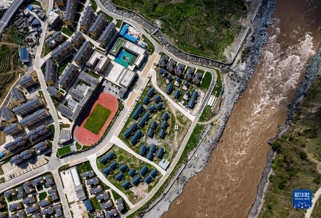 位于怒江邊的云南省怒江傈僳族自治州瀘水市大興地鎮格力小學(2020年5月18日攝,無人機照片)。新華社記者 江文耀 攝