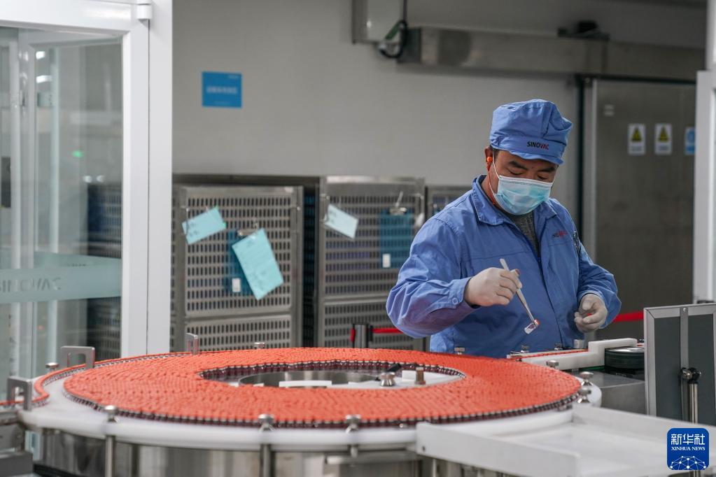2021年7月8日,工作人員在北京科興疫苗生產流水線上工作。新華社記者 彭子洋 攝