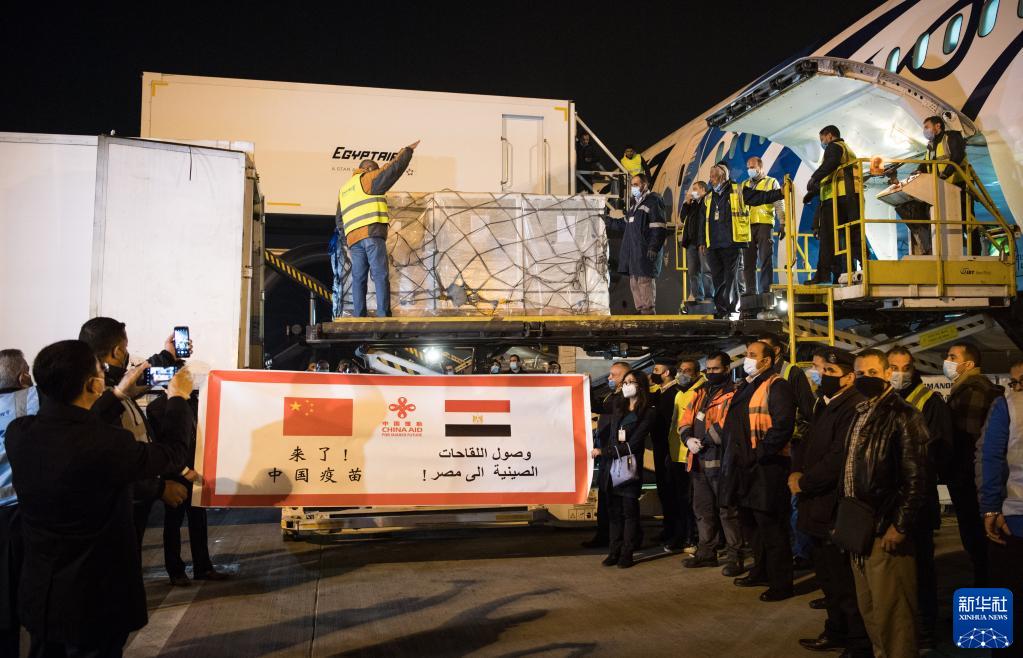 2021年2月23日,中國援助埃及的首批新冠疫苗抵達埃及開羅國際機場。新華社記者 鄔惠我 攝