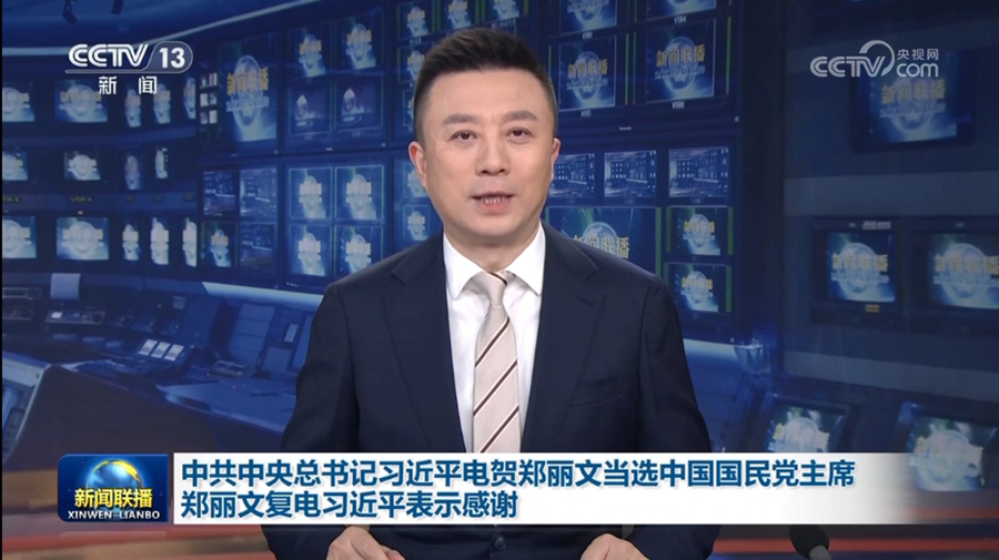 10月19日,中共中央總書記習(xí)近平致電鄭麗文,祝賀其當(dāng)選中國國民黨主席。圖為《新聞聯(lián)播》報(bào)道畫面。