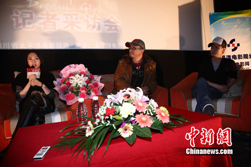 余治林攜其新片《炫舞天鵝》創作組成員愛新覺羅啟星、馬浴柯等在成都太平洋影院接受媒體采訪。張浪 攝