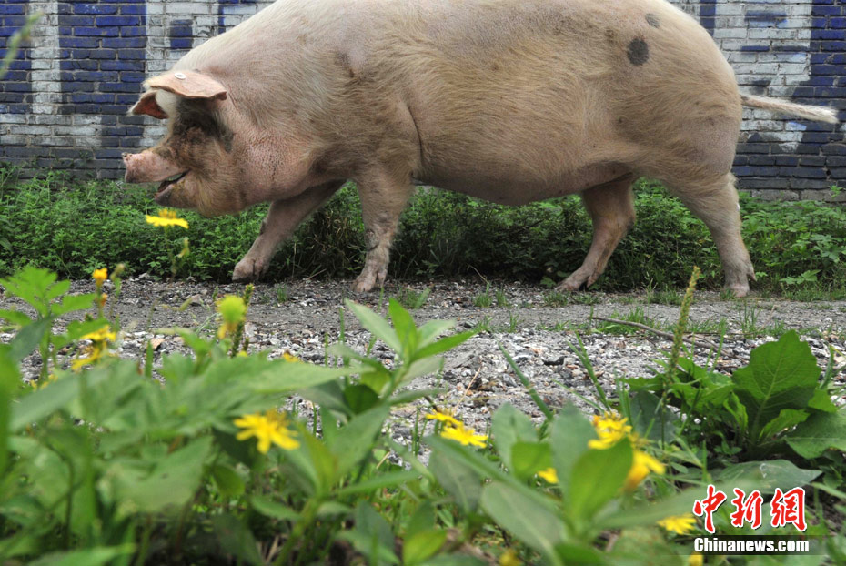 5月8日,四川省大邑建川博物館護(hù)養(yǎng)的“5.12汶川大地震”著名抗震動物豬堅(jiān)強(qiáng),目前為腿部后遺傷病動過手術(shù)后,正在專設(shè)的動物醫(yī)療所度過休養(yǎng)半年的病假生活之中。圖為豬堅(jiān)強(qiáng)“踏春賞青”。(賈國榮 攝)