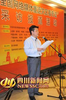 為深入宣傳在黨中央、國務院堅強領導下,抗震救災和恢復重建取得的巨大成就和偉大的抗震救災精神,深刻詮釋中國特色社會主義的制度優勢,進一步增強全國人民的凝聚力和向心力,為實現“十二五”規劃良好開局營造良好的網上輿論氛圍。中央外宣辦網絡新聞宣傳局、四川省人民政府新聞辦公室組織全國41家網站于4月22日至27日開展了“全國網絡媒體重返災區看奇跡”采訪報道活動。