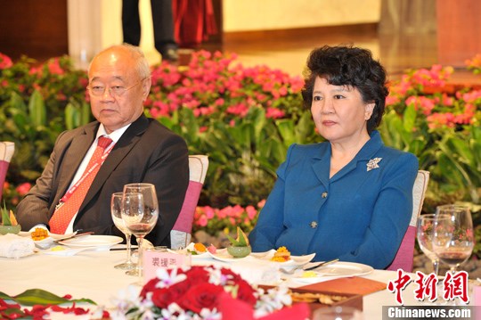 4月10日晚,海口市政府舉行2014年博鰲亞洲論壇華商圓桌會(huì)議招待晚宴,來(lái)自世界各地的23位知名華商領(lǐng)袖出席。圖為國(guó)務(wù)院僑務(wù)辦公室主任裘援平出席招待晚宴。中新社發(fā) 駱云飛 攝