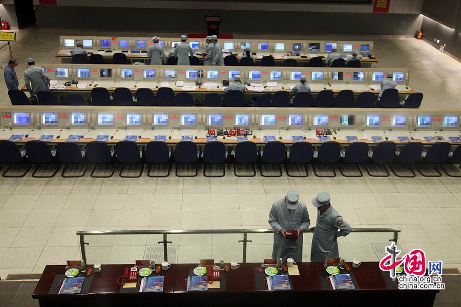 2013年12月1日,西昌衛(wèi)星發(fā)射中心指揮控制大廳:西昌指揮控制大廳,工作人員在做準備。中國網記者 李佳 攝影