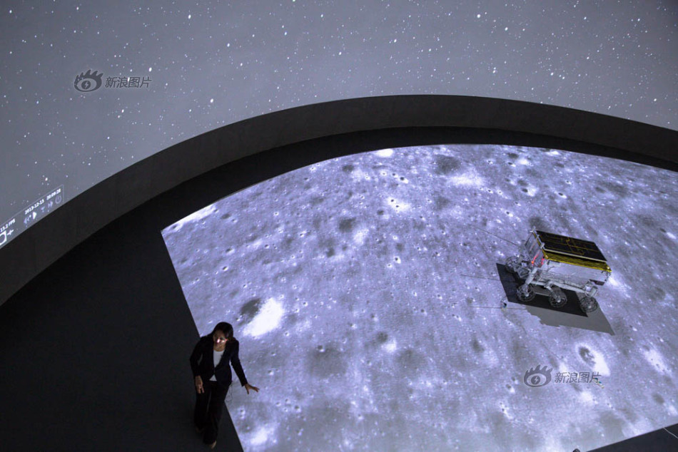 中國科學院國家天文臺地面應用系統遙科學探測實驗室,大廳中央放置的模型為此次嫦娥3號搭載的巡視器“玉兔”模型。