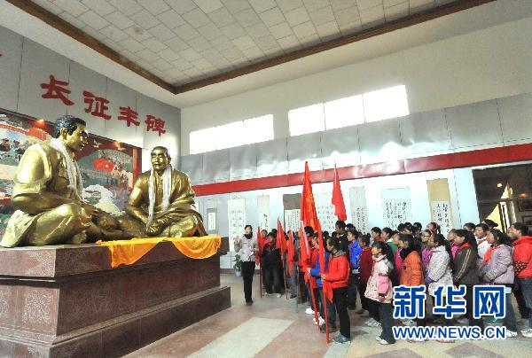 4月22日,少先隊員們參觀紀念館朱德總司令與五世格達活佛紀念塑像。建黨90周年之際,四川省甘孜藏族自治州甘孜縣第三完全小學的少先隊員們來到縣城《朱德總司令與五世格達活佛紀念館》,參觀當年紅軍長征革命歷史,緬懷革命前輩與愛國宗教人士格達活佛的真誠友誼和民族團結傳奇故事。新華社記者陳海寧攝