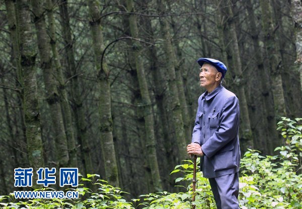 守望這片林子的楊善洲老人(資料照片)。新華社發