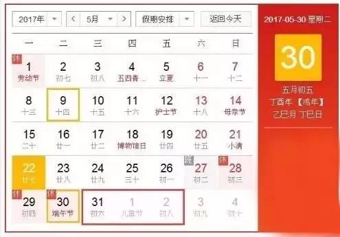 2、過了端午,下個假期要再等4個月