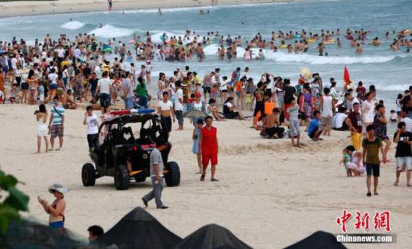 資料圖:2016年6月9日,海南三亞,大批當地市民和游客在大東海海灘扎堆“洗龍水”過端午節。中新社記者尹海明攝