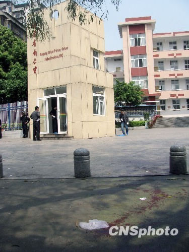 3月23日,發(fā)生特大兇殺事件的福建南平市實(shí)驗(yàn)小學(xué)校門口血跡斑斑。目前,該事件已造成8死5傷,死傷者都是實(shí)驗(yàn)小學(xué)的小學(xué)生。 中新社發(fā) 張麗君 攝