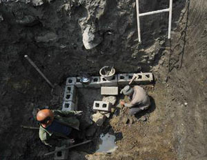 2010年3月18日,息烽縣流場(chǎng)鄉(xiāng)新中村69歲的村民周安會(huì)深井下作業(yè),周安會(huì)不畏年老憑著一手好手藝帶領(lǐng)家人挖井取水。