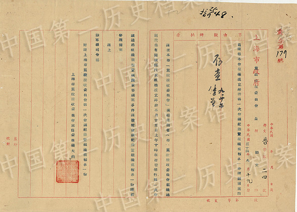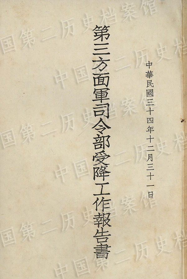 1945年8月,中國戰區第三戰區司令長官為規定受降事項致駐杭州日軍司令官備忘錄!狙胍暰W據中央檔案館資料】