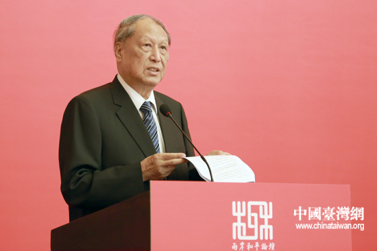 10月11日,上海,全國臺灣研究會會長成思危在首屆兩岸和平論壇上致辭。(中國臺灣網 田云鵬 攝)