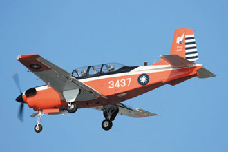 空軍官校這架編號(hào)3437的T-34C教練機(jī)昨天下午在高雄縣那瑪夏鄉(xiāng)失蹤。圖片來(lái)源:臺(tái)灣《聯(lián)合報(bào)》