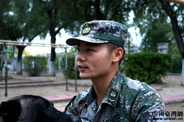 付平向記者講述他與軍犬的故事。(中國臺灣網 尹賽楠 攝)