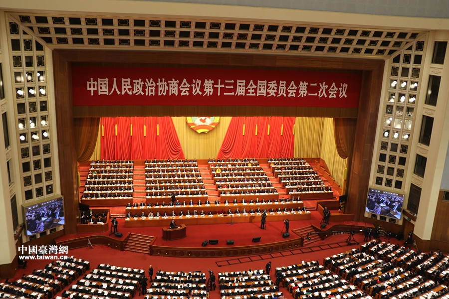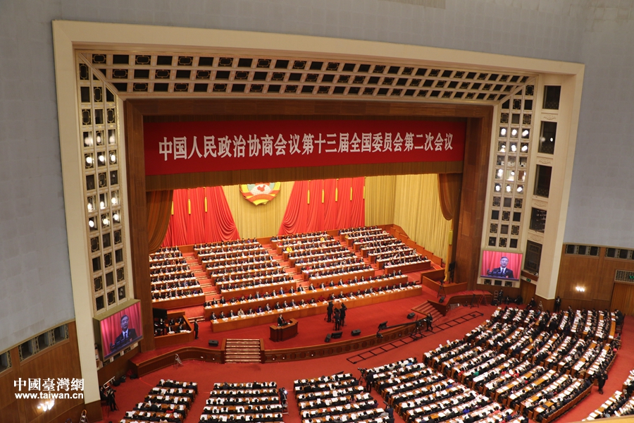 全國政協十三屆二次會議開幕會現場。(中國臺灣網 雍紫薇 攝)