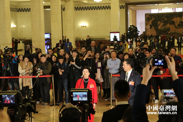 陳馮富珍委員回答記者提問。(中國臺灣網 雍紫薇 攝)