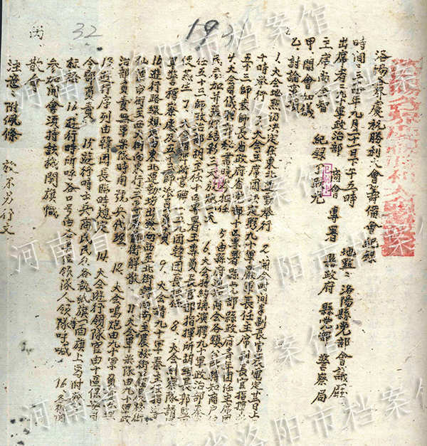 圖為1945年,河南新鄉關于日本投降后指示各區縣部署緊急措施電報稿。【央視網據中央檔案館資料】
