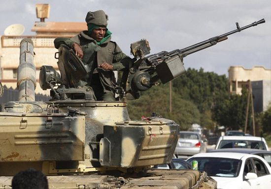 在硬件方面,卡扎菲政權(quán)曾因其反美立場(chǎng)受到蘇聯(lián)青睞,后者提供的武器被用來(lái)裝備10個(gè)坦克營(yíng)、10個(gè)機(jī)械化步兵營(yíng)、18個(gè)普通步兵營(yíng)、22個(gè)炮兵營(yíng)以及6個(gè)特種作戰(zhàn)營(yíng)。主要重裝備包括:2025輛坦克和幾乎同等數(shù)量的裝甲車、2421門各型火炮。其中,由卡扎菲小兒子哈米斯統(tǒng)帥的第32旅實(shí)力最強(qiáng),被視為政府軍發(fā)起反撲的急先鋒。