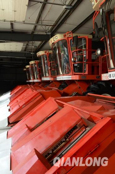 五里明鎮(zhèn)現(xiàn)代農(nóng)機(jī)合作社示范區(qū)已達(dá)到全省一流農(nóng)機(jī)合作社標(biāo)準(zhǔn)——機(jī)械配置先進(jìn)、經(jīng)營(yíng)機(jī)制合理、農(nóng)機(jī)農(nóng)藝融合緊密。圖為五里明鎮(zhèn)現(xiàn)代農(nóng)機(jī)合作社示范區(qū)內(nèi)的玉米聯(lián)合收割機(jī)。(千龍網(wǎng)滕祖敏 攝)