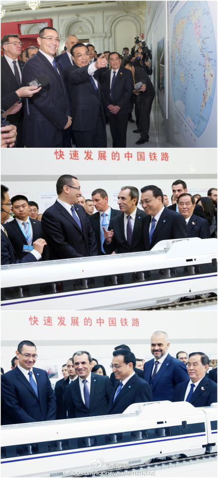 據新華社“新國際”微博報道,26日,羅馬尼亞議會宮迎來一批特殊“參觀者”:李克強總理與中東歐國家領導人共同參觀了中國鐵路等基礎設施及裝備制造展。一幅幅展板,一個個模型,不僅講述著了中國取得的巨大成就,也預示著雙方巨大的合作潛力。
