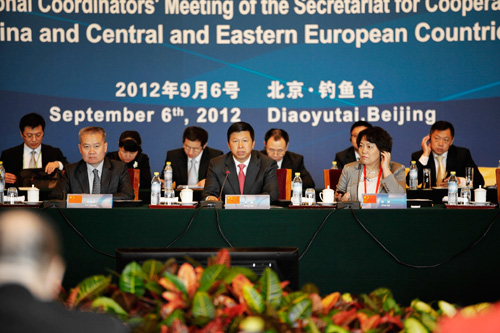 。ㄗⅲ何恼掳l(fā)布時(shí)間為2012年9月7日)2012年9月6日,中國(guó)—中東歐國(guó)家合作秘書處成立大會(huì)暨首次國(guó)家協(xié)調(diào)員會(huì)議在北京舉行。中方秘書處成員單位代表以及中東歐16國(guó)國(guó)家協(xié)調(diào)員和代表、駐華使節(jié)共同出席會(huì)議。