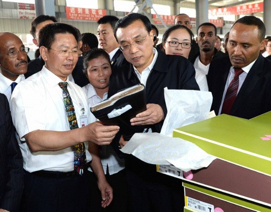 5月5日,中國(guó)國(guó)務(wù)院總理李克強(qiáng)在埃塞俄比亞總理海爾馬裡亞姆陪同下參觀東方工業(yè)園。這是李克強(qiáng)在生產(chǎn)車間同工人親切交談。新華社記者 李學(xué)仁 攝