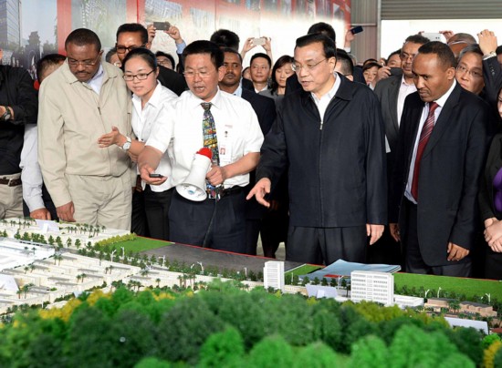 5月5日,國(guó)務(wù)院總理李克強(qiáng)在埃塞俄比亞總理海爾馬裡亞姆陪同下參觀東方工業(yè)園。新華社記者 李學(xué)仁 攝