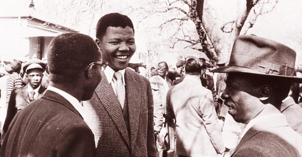 在約翰內斯堡,曼德拉先后干過金礦保安、律師事務所學徒、律師,并目睹了南非種族隔離制度的野蠻和黑暗。他義無反顧地投身于南非人民的解放事業(yè)。早在1944年,曼德拉參加了"非洲人國民大會"(簡稱非國大),并參與組建了"非洲人國民大會青年團"。他先后擔任過德蘭士瓦省非洲人國民大會主席、全國非洲人國民大會第一副主席、全國非洲人國民大會主席。圖為1950年晚些時候,曼德拉與兩名"叛國罪"同犯聊天。