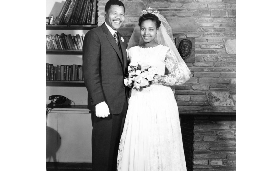 1958年,曼德拉與年輕漂亮的溫妮一見鐘情,不久就走入婚姻殿堂。圖為曼德拉和溫妮的結婚照。二人于1996年離婚。