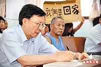 臺當局“行政院長”劉兆玄21日至收容中心與災民座談,災民多表達強烈返鄉意愿。來源:臺灣《蘋果日報》